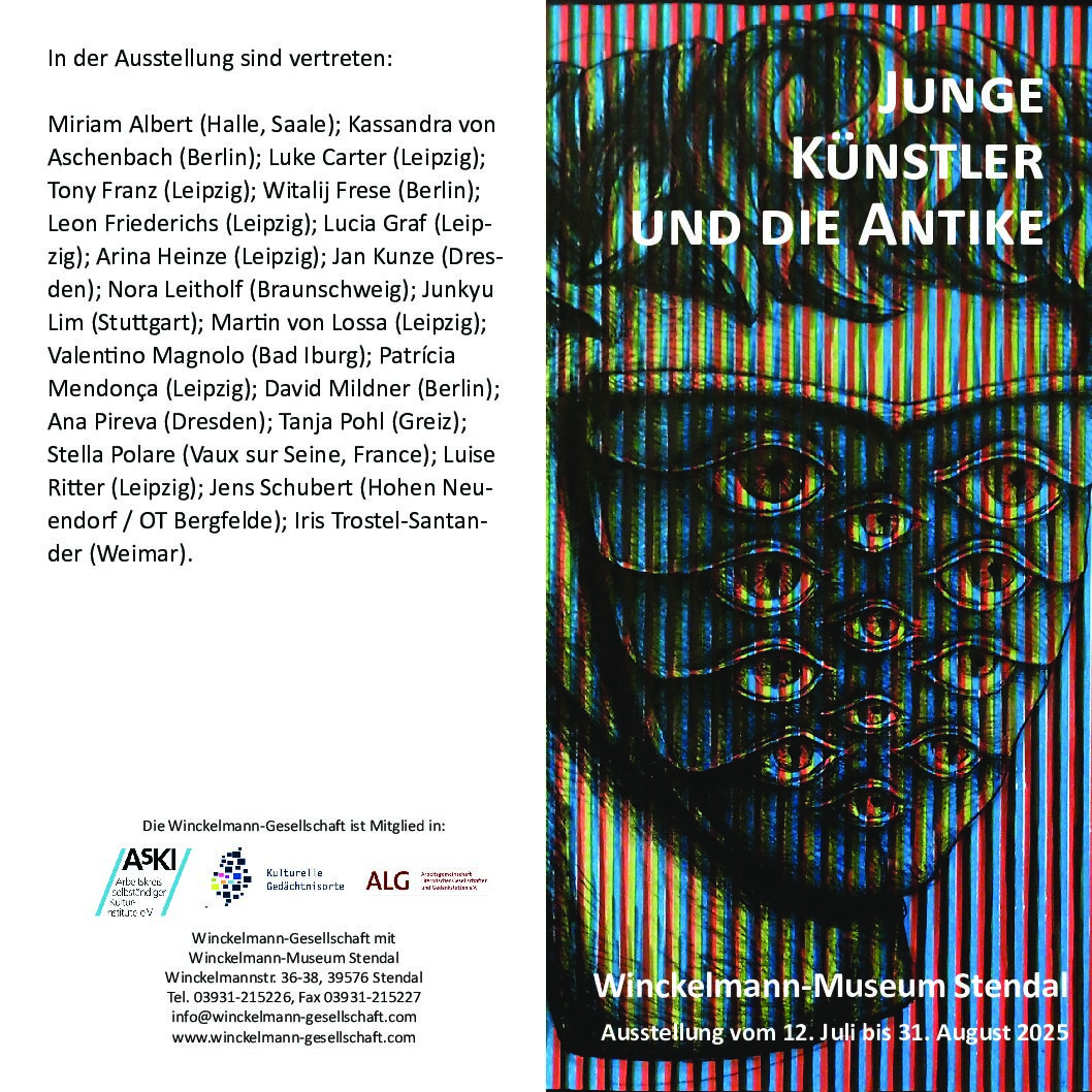 Eröffnung der Sonderausstellung Mit Podiumsgespräch mit den Künstlerinnen und Künstlern unter Moderation von Kunsthistorikerin Frau Dr. Sibylle Badstübner-Gröger Was sagt einer jüngeren Künstlergeneration heute noch das Thema „Antike“? Bilden die griechisch- römischen Geistes- und Kulturhinterlassenschaften, die Mythologie oder die archäologischen Wiederentdeckungen überhaupt noch eine Bezugsebene für heutiges künstlerisches Schaffen? Und wenn ja, wie sieht dieses aus? Antworten auf diese Fragen versucht die Ausstellung im Winckelmann-Museum…